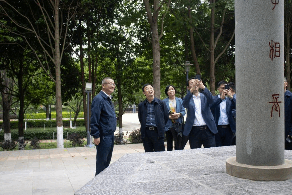 4月17日下午,长沙师范学院党委副书记周明侠一行到我校调研交流。周明侠一行参观了我校呈贡校区西南联大纪念碑、西南联大仿制门和北京大学、清华大学、南开大学三校纪念亭等校园文化景点,校党委书记张祖武、党委副书记李宏随同调研。