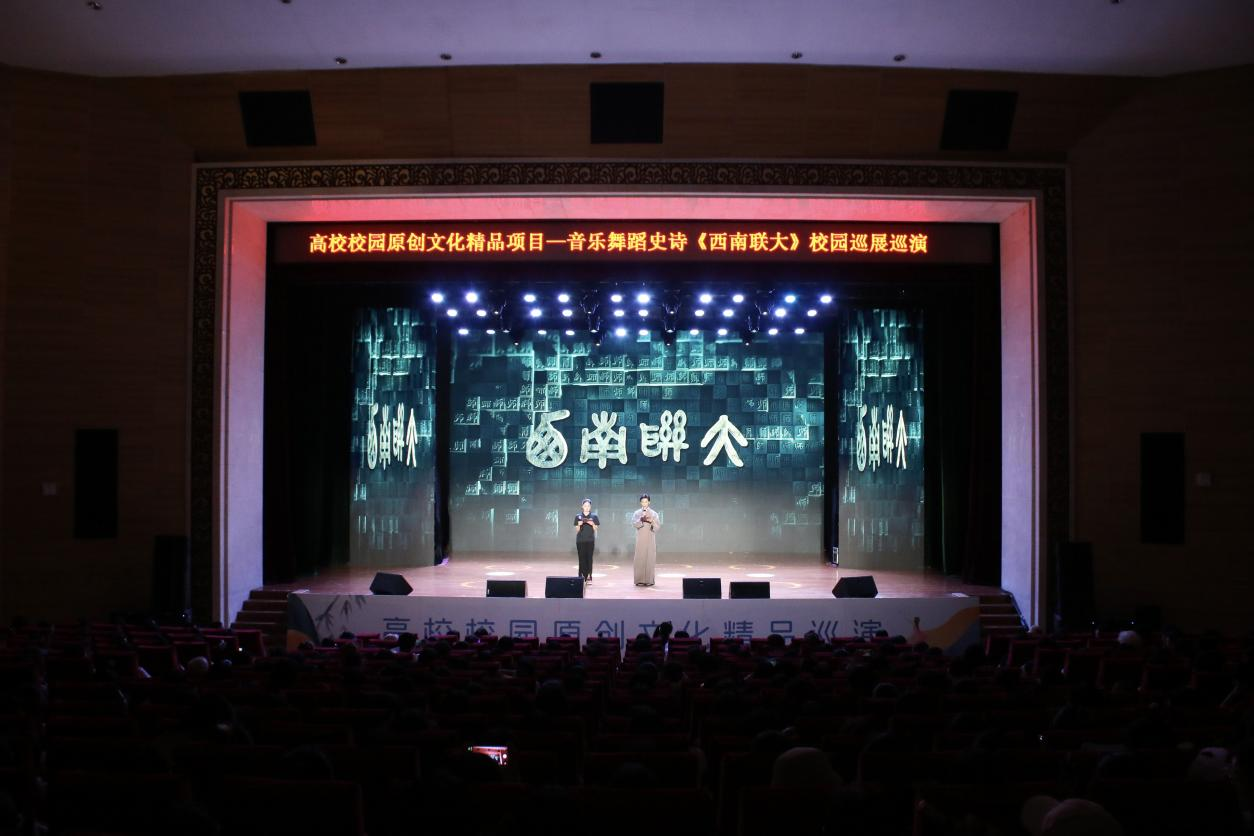 4月26日,云南省委教育工委高校校园原创文化精品巡展巡演项目——音乐舞蹈史诗《西南联大》在云南师范大学、昆明理工大学、云南中医药大学进行了三场巡展巡演。