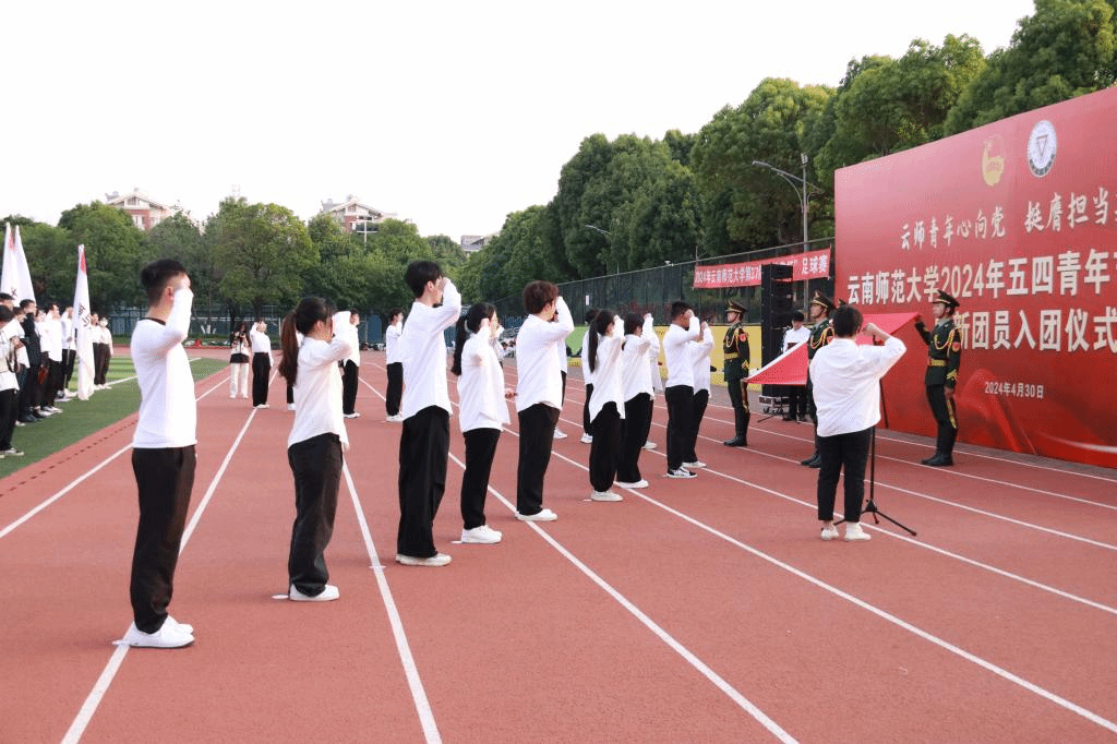 为教育引领全校广大团员青年坚定不移听党话、感党恩、跟党走,深刻感悟中国共产党领导中国青年运动的光辉历程,汲取奋进力量,筑牢信仰之基,4月30日清晨,“云师青年心向党 挺膺担当建新功”云南师范大学2024年五四青年节升国旗仪式暨新团员入团仪式在呈贡校区西区田径场举行。