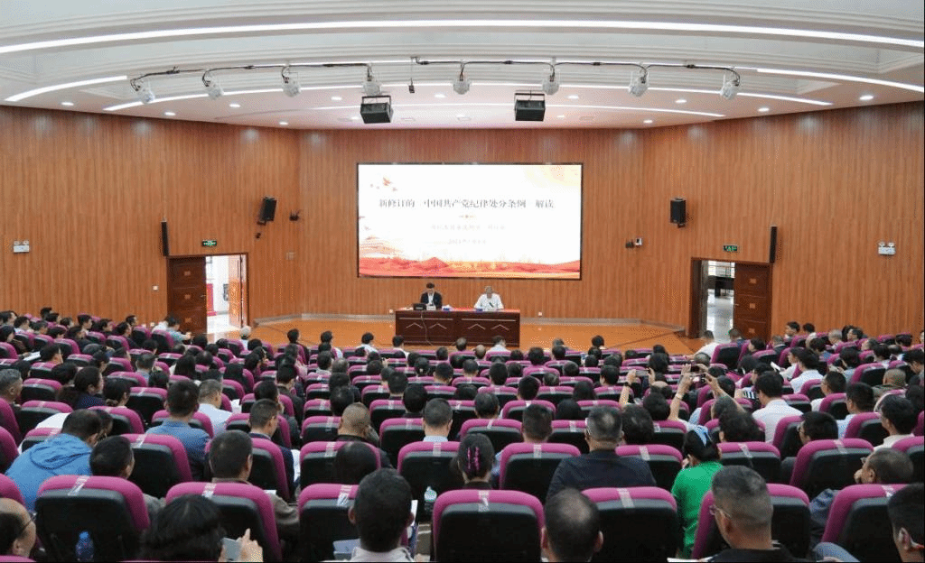 5月9日下午,我校领导干部党纪学习教育读书班举行专题辅导暨党委理论学习中心组集中学习。省纪委监委法规室相关负责人作专题辅导,深入解读新修订的《中国共产党纪律处分条例》。报告会由校党委书记张祖武主持,学校全体副处级以上党员领导干部、职能部门党员干部400余人参加学习。其他党员师生在分会场同步参学。
