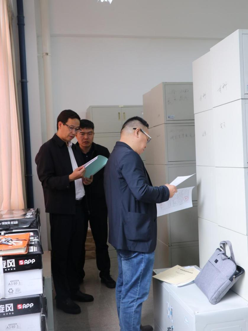 会后,陈正权一行实地随机查阅了化学化工学院教学基础档案材料保存情况。