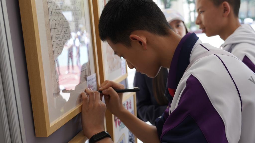 近日,云南师范大学实验中学校本部开展了“清风传家、 德润实验”书画作品征集活动,号召全校师生用书画作品的方式,介绍自己家庭的优良家风,诠释师大实验学子对清廉文化的学习和理解,引导广大学生树立正确的世界观、人生观、价值观。5月14日,学校将其中60幅作品装裱后在校园内进行展示,小作者们在收藏卡上庄重的签上了自己的名字,并积极向同学们介绍自己的家风和对清廉校园的理解。