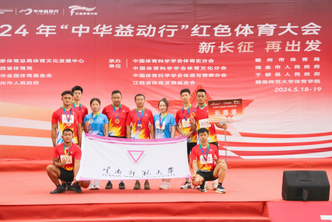 5月18日,2024年“中华益动行”红色体育大会在江西瑞金叶坪革命旧址举行,我校体育学院8名运动员代表云南省斩获团体总分第一名,拿下大赛全国冠军。