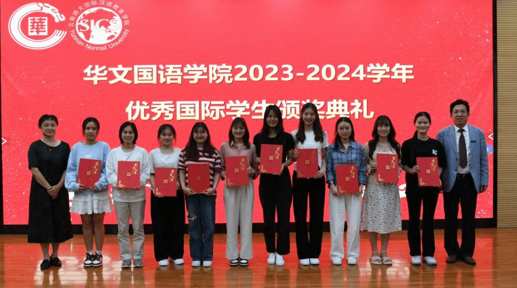 6月6日,云南华文学院举行2023-2024学年优秀国际学生颁奖典礼,学院领导、国际学生管理科室相关负责人、国际学生班主任、任课教师代表和国际学生代表100余人参加了典礼。