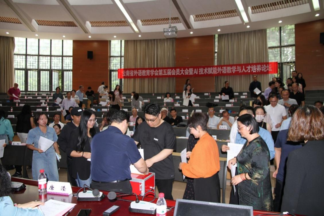6月7日,云南省外语教育学会第五届会员大会暨“AI技术赋能外语教学与人才培养论坛”在我校召开。本次大会由云南省外语教育学会、云南高校外语教学研究会和云南省翻译工作者协会共同主办,云南师范大学外国语学院承办,外语教学与研究出版社、科大讯飞股份有限公司和云南智泉翻译有限公司提供支持。云南省民政厅社会组织管理局、云南省社会科学界联合会学会部,云南师范大学社科办、外国语学院领导出席了会议。来自全省各大中专院校70多个理事单位代表、中小学名师代表及企业界代表100多人参加了大会。