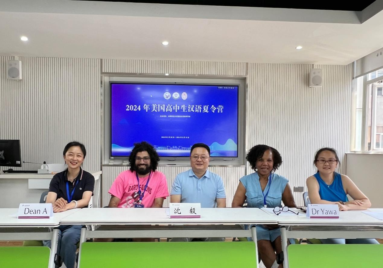 6月11日,由云南师范大学国际汉语教育学院举办的2024年美国高中生汉语夏令营结营。汉语国际推广师资培训基地(昆明)常务副主任沈毅教授、来自美国巴德高中华盛顿校区(Bard DC)的Arya Espahbodi主任、Yawa Agbemabiese博士以及所有高中生参加了结营仪式。