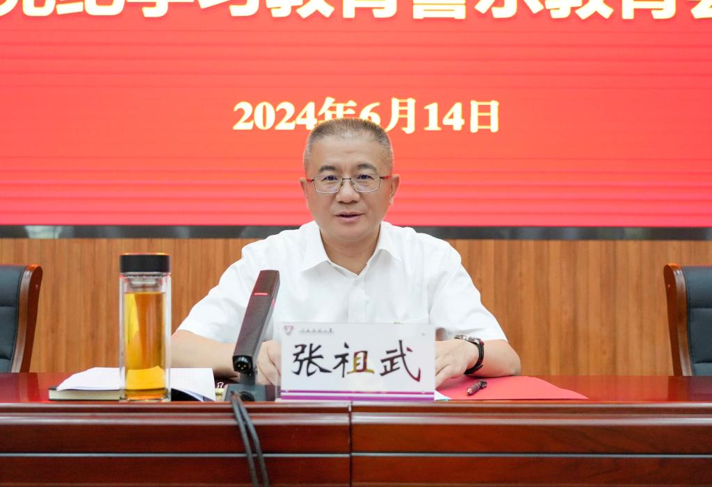 张祖武指出,目前党纪学习教育正扎实推进,全校各级党组织、全体党员干部师生要深入学习贯彻全省警示教育会议精神,对党纪学习教育做一个阶段性思考总结,看一看学得怎么样,看一看悟得怎么样,看一看守得怎么样,看一看做得怎么样,用“四个看一看”对照检视,真正让党章党规党纪内化于心、外化于行,做到学一辈子、守一辈子。