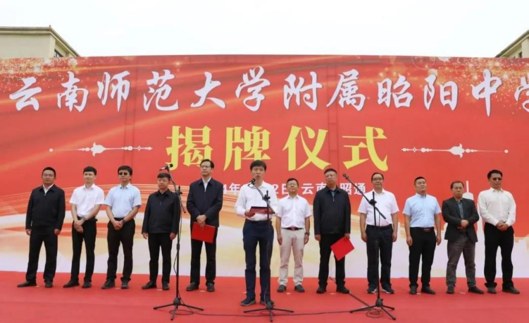在云南省紧紧围绕“三个定位”、“3815”战略发展目标及教育高质量发展三年行动计划,加快推进教育强省的背景下,我校与昭阳区携手合作成立云南师范大学附属昭阳中学,并于6月22日上午在昭阳区第一中学举行揭牌仪式。我校校长胡金明、副校长孟庆红,昭通市副市长马洪旗,昭阳区区委副书记、区长成刚,副区长潘多等领导及区属相关职能部门代表、师生代表、家长代表参加揭牌仪式。