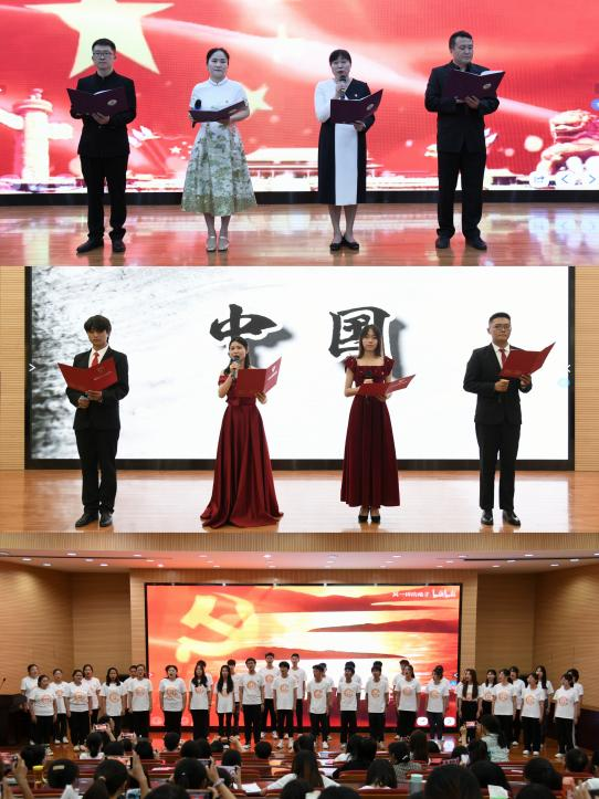 为庆祝中国共产党成立103周年,学院教师党员代表、学生党员代表和入党积极分子精心准备了《永远跟党走》《青春中国》等诗歌朗诵节目和歌曲合唱《追寻》,通过艺术的方式带领全体党员回顾党的光辉历程,讴歌党的丰功伟绩。