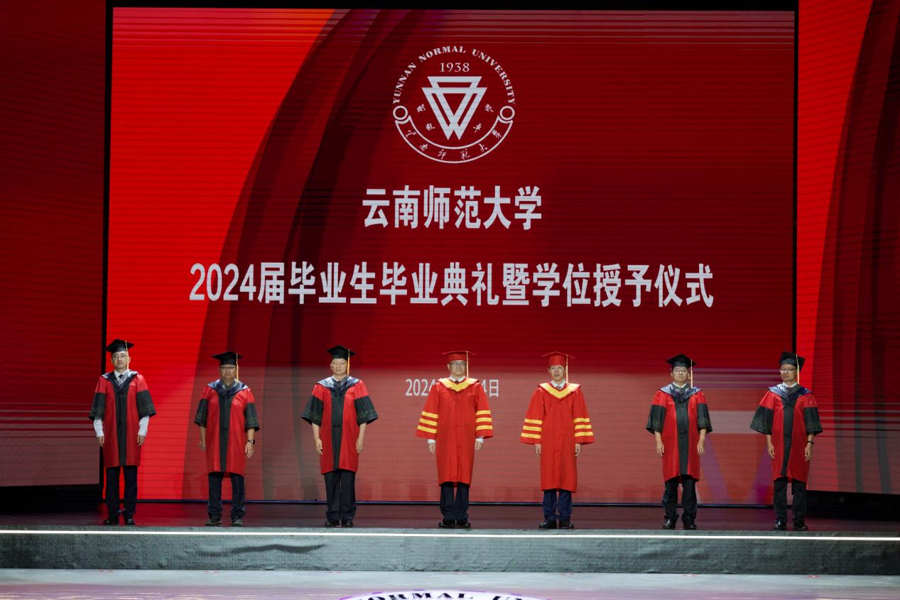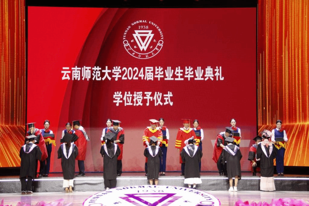 盛夏的师大,阳光明媚,绿意盎然。弥漫在校园里的百合花香,仿佛在为毕业生们送上离别的祝福。6月24日下午,云南师范大学毕业生代表汇聚明德5号楼演播厅,参加2024届毕业生毕业典礼暨学位授予仪式。