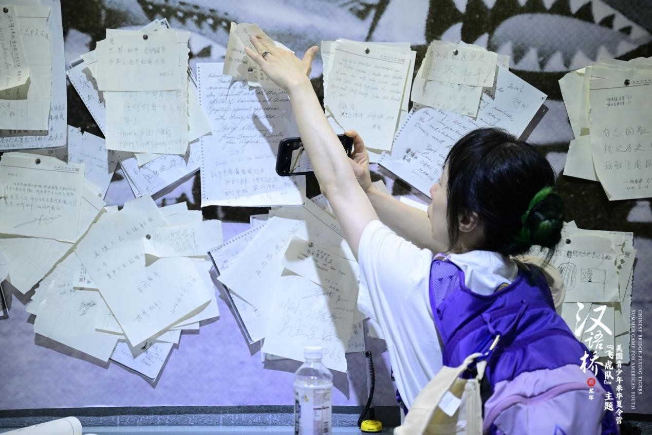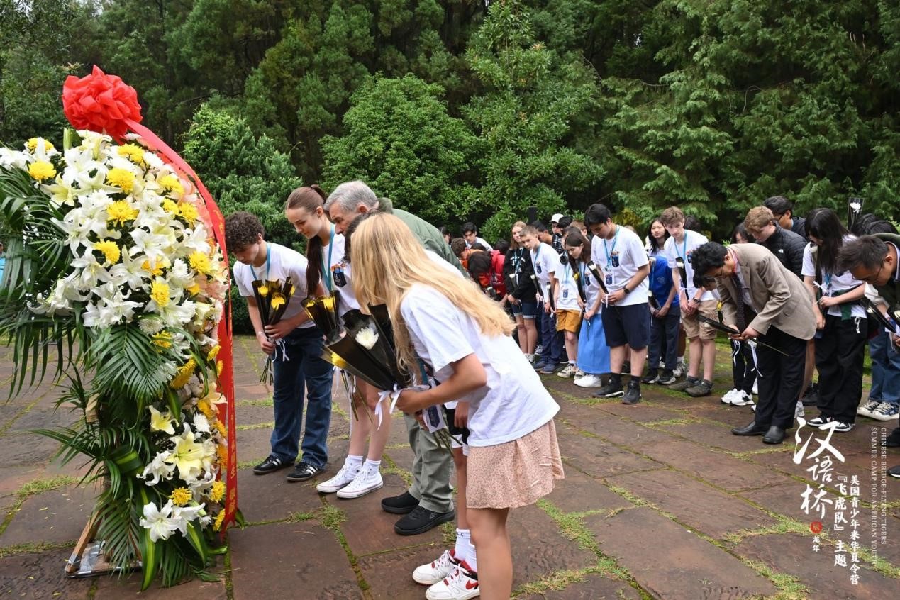 华裔同学杨斐参观完后激动地说:“之前我只在网上看过飞虎队的故事,现在我真的来到了这里,我被飞虎队的故事深深感动,也不由想起了爷爷。我的爷爷是一名中国军人,今天我不仅仅是给飞虎队献花,也是在给爷爷献花。我觉得他们都非常伟大,他们留下来的精神值得我们永远学习。”