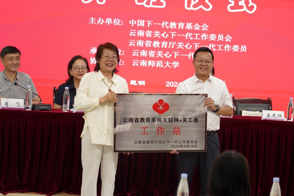 最后,陶晴代表云南省教育厅关工委向云南师范大学授牌“云南省教育系统互联网+关工委工作站”。