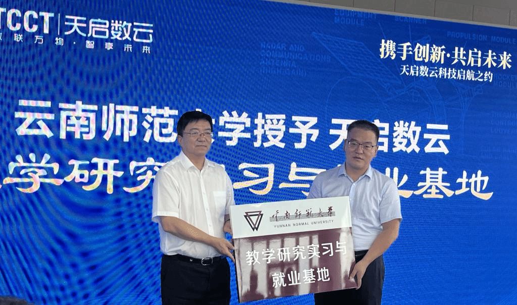 调研考察组首先参观了天启数云(云南)科技有限公司的办公环境、项目展厅和研发中心,深入了解了公司的发展历程、企业文化以及技术创新情况。随后举行了教学研究实习与就业基地授牌仪式。双方就人才培养、校企合作、实习实训等方面的关键环节进行了深入交流,并探讨了未来可能的合作方向。