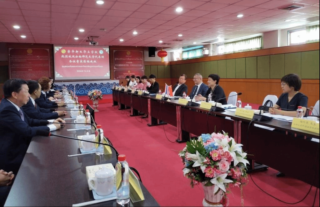 陈海平介绍了泰北经济社会发展和对华合作情况,肯定了云南师大积极联合泰国高校推动中文教育、推广中华文化。他表示,中泰将迎来建交50周年,泰北中文教育和中泰文化交流面临新的机遇,希望云南师大发挥自身学科和地理优势,同泰方开展更加广泛深入合作,为构建中泰命运共同体架设桥梁。