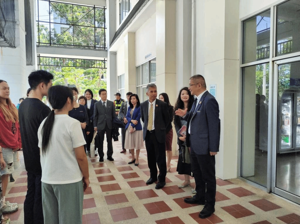 张祖武一行参观了佛统皇家大学校园,走访学生宿舍,看望慰问了我校在佛统皇家大学交换学习实习的学生。张祖武勉励同学们,要珍惜赴国外学习实习的机会,做好学习和职业生涯规划,积极融入、用心学习、开阔眼界、增长见识,当好传播中华文化和增进中泰友谊的使者,讲好中国故事。