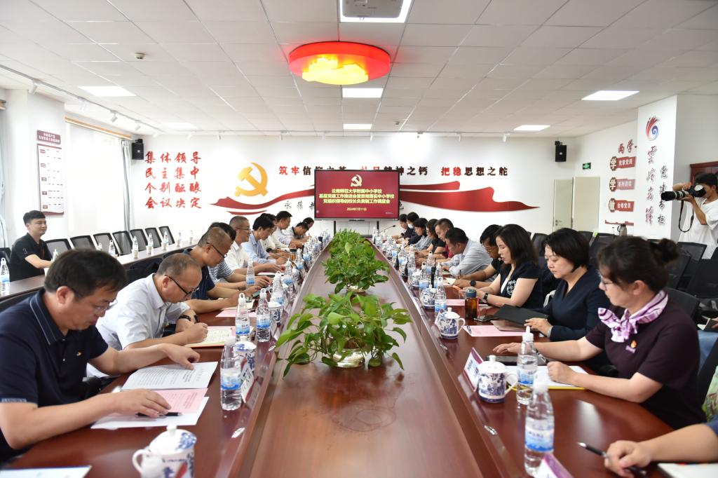 7月11日下午,附属中小学校基层党建工作推进会暨贯彻落实中小学校党组织领导的校长负责制工作调度会在云南师范大学实验中学盘龙校区举行。校党委书记张祖武,党委副书记、校长胡金明,党委副书记李宏、降富楼,纪委书记孙剑和相关职能部门主要负责人,基础教育集团,附属中学、实验中学、附属小学、云南民族中学、附属世纪金源学校党政领导参加会议。