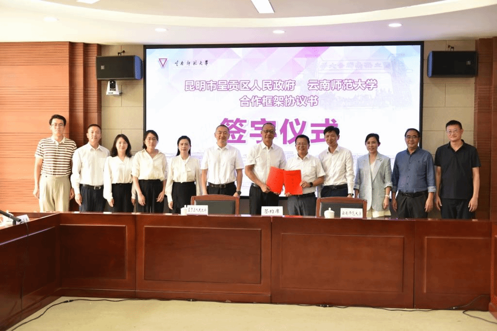 在与会领导的见证下,李宁与孟庆红共同签署了《昆明市呈贡区人民政府与云南师范大学合作框架协议书》。校地双方将在深化基础教育合作共建、搭建教师专业成长平台、共建毕业学生实习实训基地、建立大学生就业创业长效机制、深化属地协作机制、加强共青团建设及志愿服务合作等领域实施合作项目,实现携手共进。