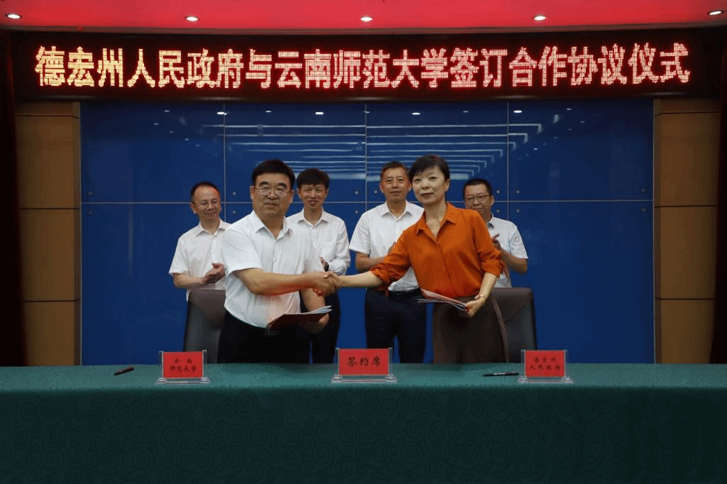 7月25日,云南师范大学与德宏州人民政府合作协议签订仪式在芒市举行。德宏州委副书记、州长卫岗,副州长雪琳以及州各相关部门负责人;我校校长胡金明、副校长武友德,校办、校友工作与国内合作办公室、乡村振兴办、基础教育集团、地理学部有关负责人以及校友代表参加仪式。