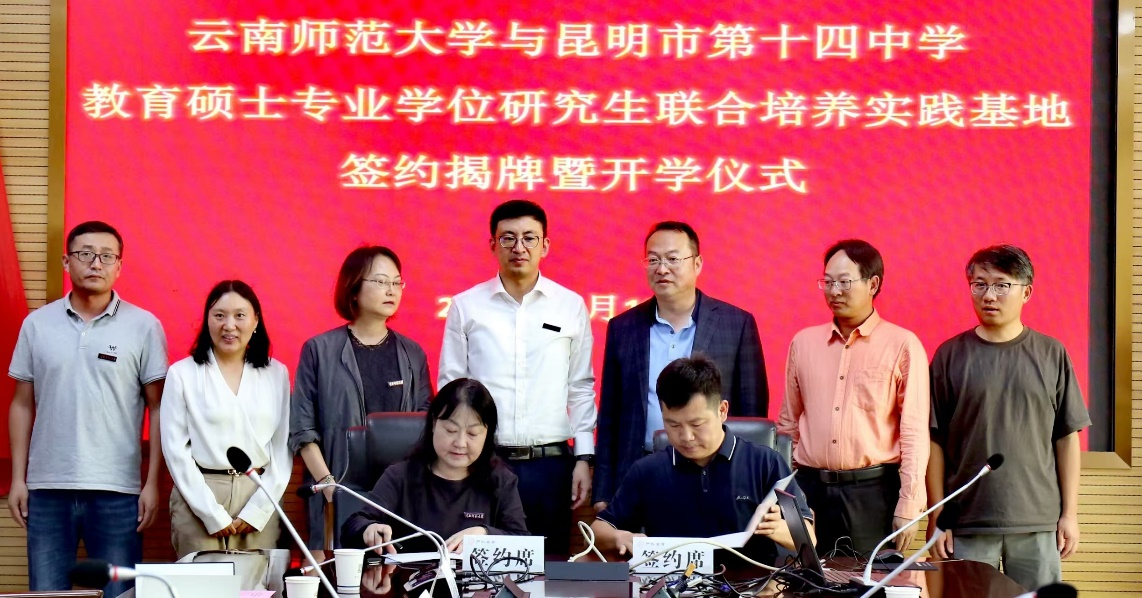 9月13日,云南师范大学与昆明市第十四中学教育硕士专业学位研究生联合培养实践基地签约揭牌暨开学仪式在昆明市第十四中学举行。副校长徐锐、研究生处处长范丽仙、相关学院负责人、教育硕士实习生,五华区教体局副局长、昆明市第十四中学教育集团总校长、党委书记史云波,党委副书记方应民、副校长贺祥俊以及相关负责人、研究生导师代表参加了开学仪式。仪式由范丽仙主持。