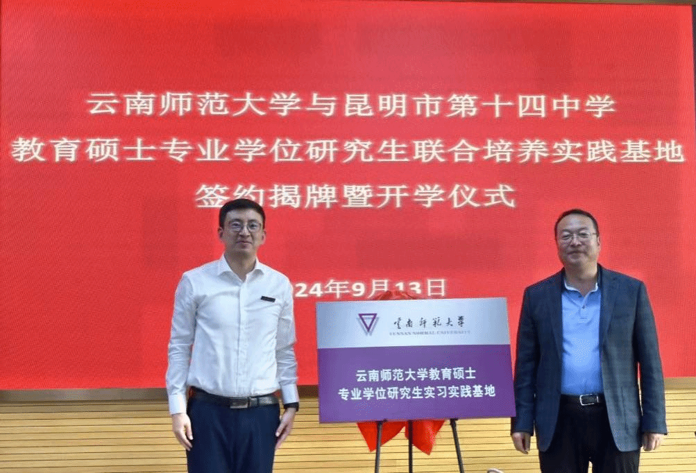 最后,徐锐与史云波共同为云南师范大学教育硕士专业学位研究生实习实践基地揭牌。