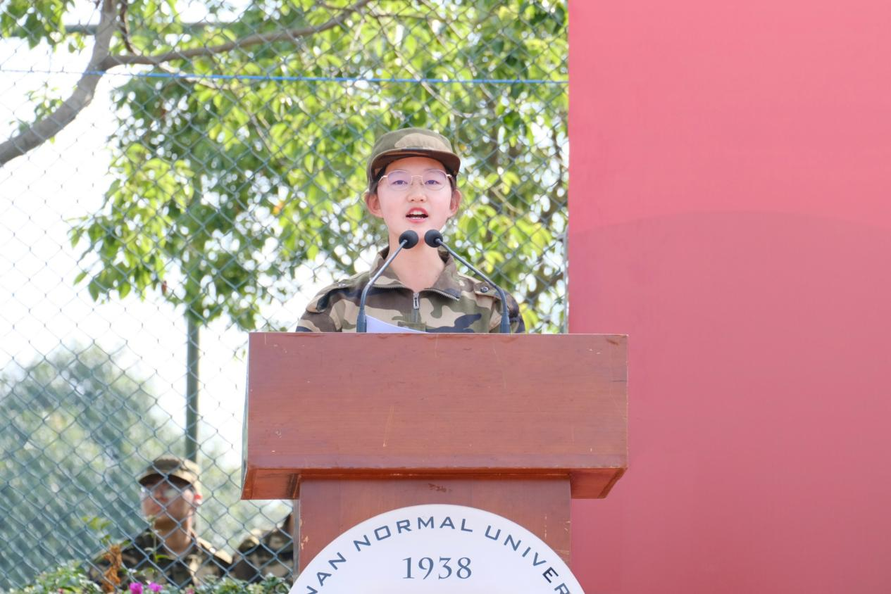 云南华文学院李庆楠作为军训学员代表发言,回顾了21天的军训时光,表达对全体教官和老师的感谢。李庆楠表示,今后会铆足“咬定青山不放松”的韧劲、“宝剑锋从磨砺出”的拼劲,把军训中收获的热情、毅力和必胜的信心带到学习中去。作为西南联大精神的传承者,定会以刚毅坚卓的奋斗之姿,勤奋好学的钻研之态,不忘初心,砥砺前行。