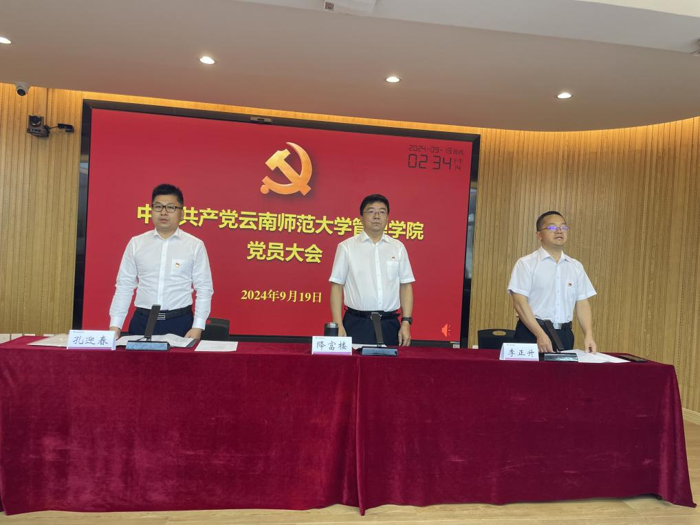 9月19日,中国共产党云南师范大学管理学院党员大会在一二•一校区召开。党委副书记降富楼同志,党委组织部蔡文华同志出席大会,学院领导班子及师生正式党员共计130人参加会议。会议由学院党委书记李正升同志主持。