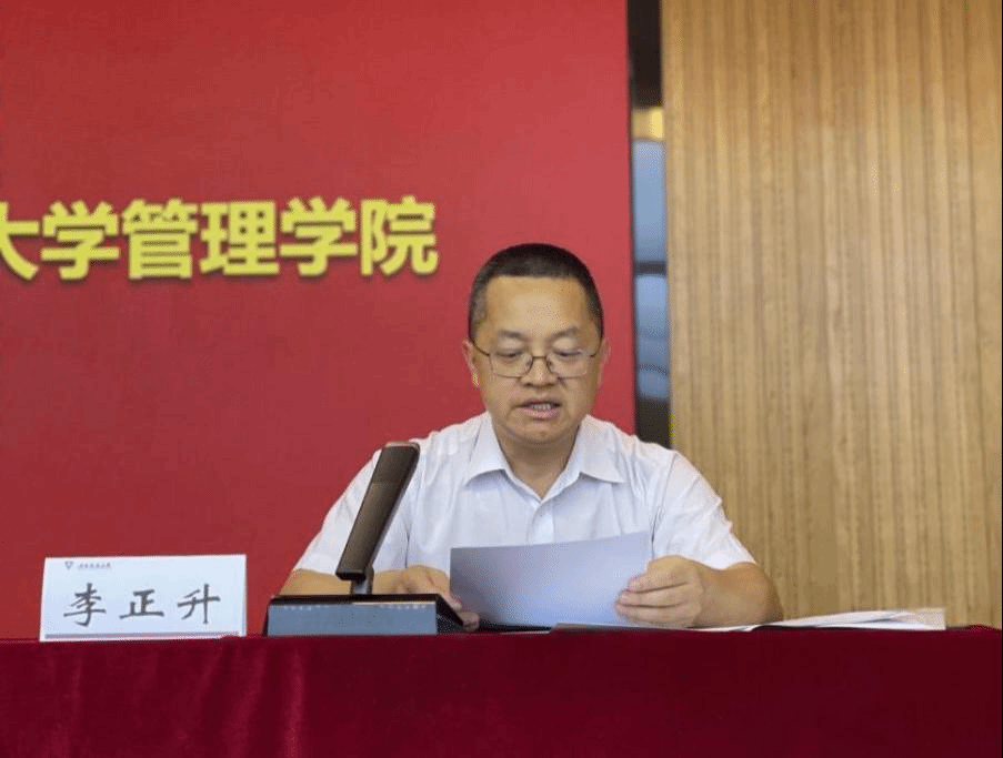 李正升同志代表学院党委作题为《守正创新担使命 凝心聚力开新局——奋力推进管理学院各项工作高质量发展》的工作报告。