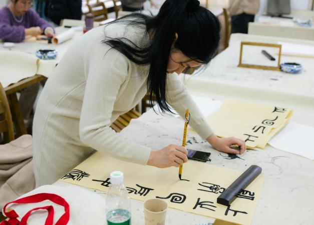 毛笔字比赛现场,参赛选手们挥毫泼墨、笔走龙蛇,有的行云流水,一气呵成;有的自然舒展,运笔秀巧。一幅幅精美的书法作品跃然纸上。
