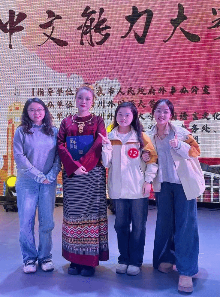 本次比赛以中外学生联合组队方式进行,我校代表队由硕士研究生周颖、蔡恩慧、田羽希(缅甸)组成,袁梦、戴超为指导教师。比赛分为中文演讲、当代中国知识竞答、情景猜谜、中华才艺比拼四个环节,同学们凭借扎实的知识储备、卓越的中文能力、出色的团队协作、精彩的才艺展示以及对当代中国的深刻理解脱颖而出,取得了优异成绩。