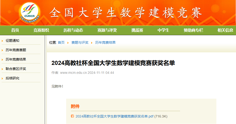 全国大学生数学建模竞赛创办于1992年,是首批列入教育部“高校学科竞赛排行榜”的19项竞赛之一。1994年被教育部列为全国大学生四大赛事之一,2023年列入“教育部认可的84项全国大学生学科竞赛A类竞赛名单”目录,现已成为全国高校参与规模最大的综合性学科竞赛之一。2024年,来自全国及美国、英国、澳大利亚、新加坡、马来西亚的1788所院校/校区、65761队(本科59278队、专科6483队)、近20万人报名参赛。在本科组比赛中,共评选出国奖1500项,获奖率2.53%(其中,一等奖获奖率仅0.50%)。