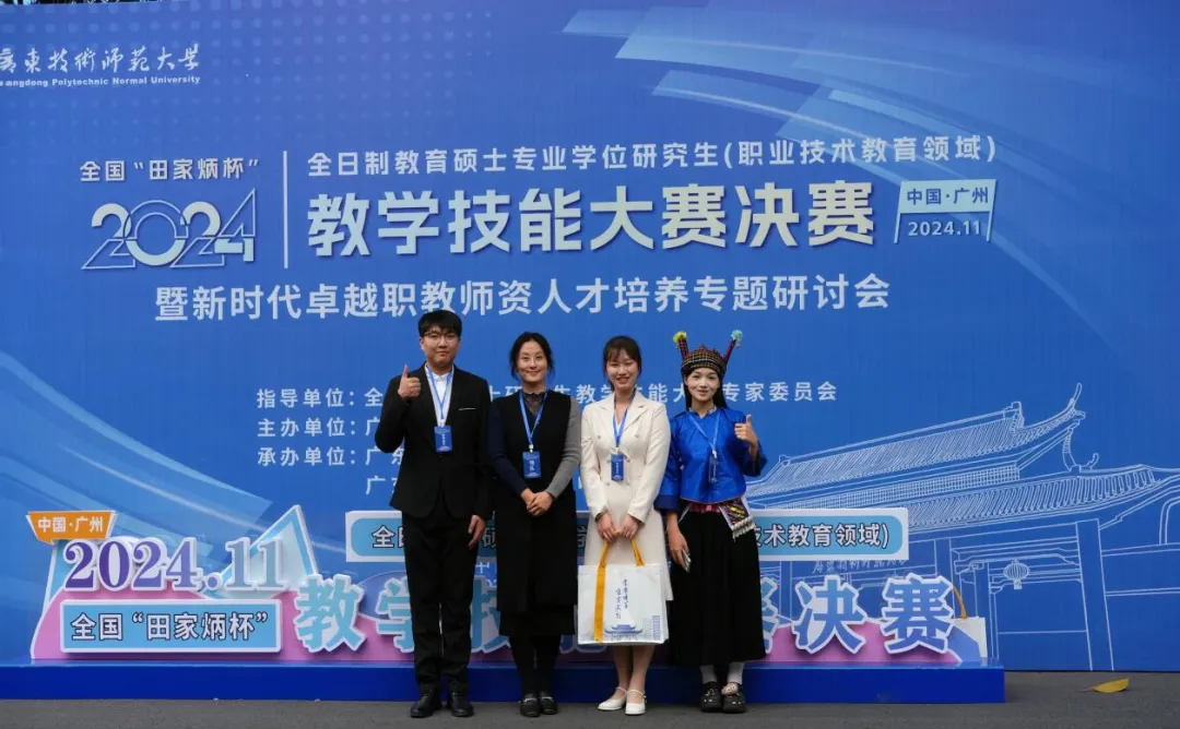 11月21日至23日,2024年全国“田家炳杯”全日制教育硕士专业学位研究生(职业技术教育领域)教学技能大赛决赛在广东技术师范大学举行。经过初赛选拔,我校职业技术教育学院职业技术教育专业3位研究生从236名选手中脱颖而出进入决赛。余媛媛老师带队参加决赛。