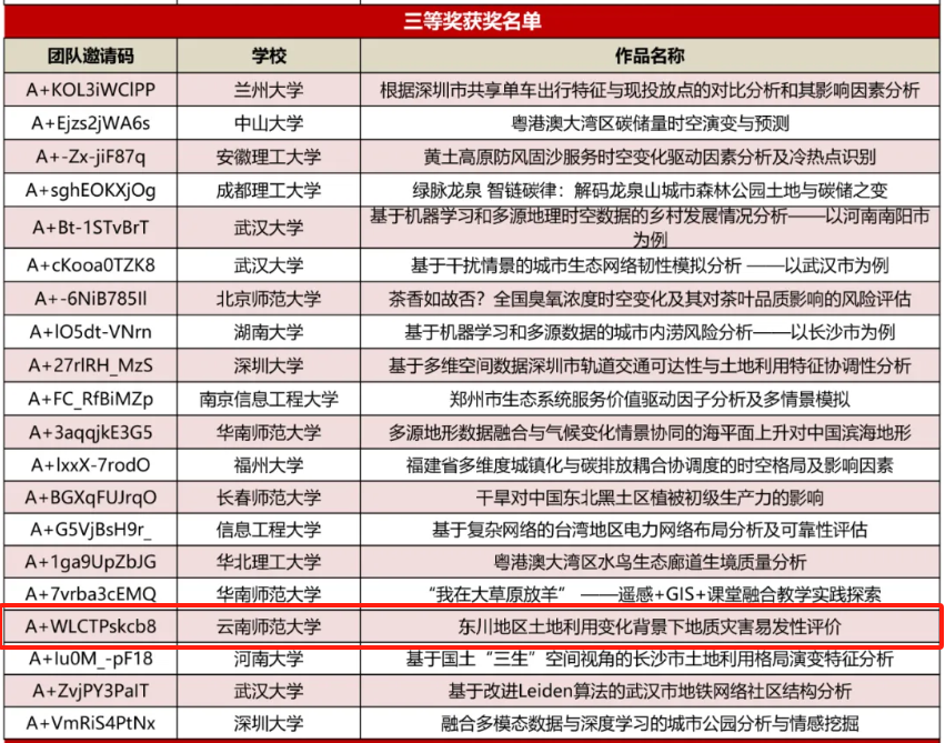 我校地理学部重视培养学生实践能力与创新意识,通过组织学生参与各级各类赛事,助力学生成长为具有国际视野和实践能力的复合型人才。此次获奖是参赛学生、指导教师共同努力的结果,展现了地理学部专业教育质量和科研水平,体现了学校长期坚持产学研结合和实践教学改革的成效。