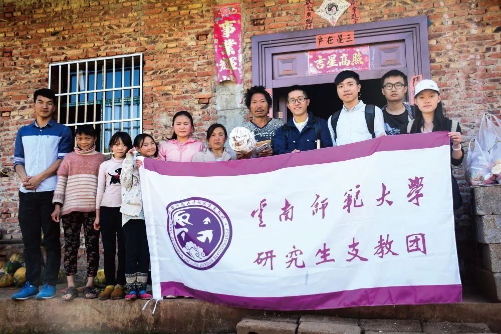 2014年,在云南昭通鲁甸县“8·03”地震中,震中龙头山镇龙泉中学21名学生、3名年轻教师不幸遇难,校舍严重损毁。云南师大充分发挥师范教育优势,及时组建研究生支教团(简称“研支团”),持续为龙泉中学选派品学兼优的学生党员开展每期一年的支教帮扶。从2015年至今,已有10批60名学生党员在龙泉中学接力支教帮扶。