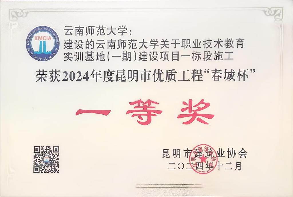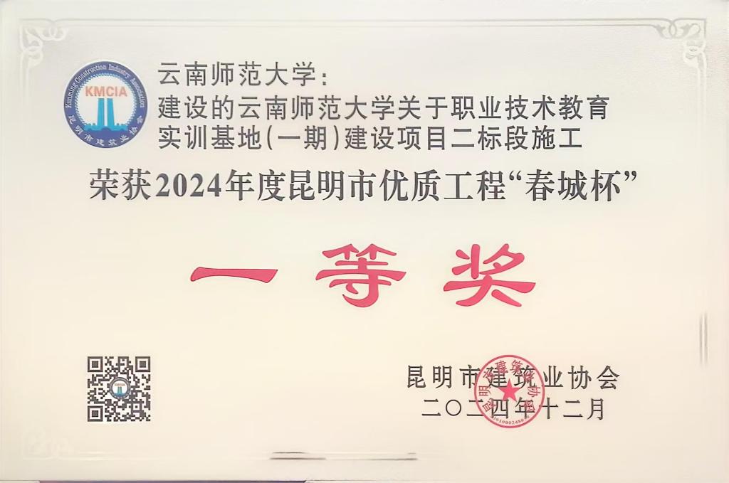 我校职业技术教育实训基地(一期)建设项目获2024年度昆明市优质工程“春城杯”一等奖