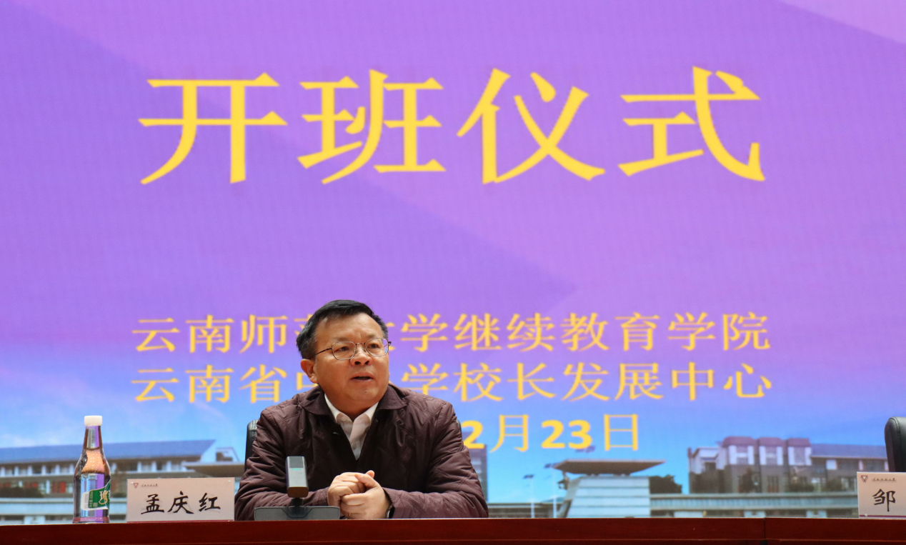 开班仪式上,孟庆红阐述了“万名校长培训计划”项目的意义。省委书记王宁在2024年全省教育大会上强调,推进“3815”战略发展目标,与全国同步基本实现社会主义现代化,教育必须走在前,做到优先发展、提速发展、全面发展,像抓脱贫攻坚一样抓教育。而抓教育必须培养大批好校长、好班主任、好老师。因此,学校要继续实施好“万名校长培训计划”项目,让“云岭好校长”传授办学治校经验。他希望学员能开阔思路、拓宽视野,苦练内功、积蓄后劲,努力成长为有责任、有情怀、有担当的优秀校长乃至教育家,为推进云南省基础教育高质量发展作出积极贡献。