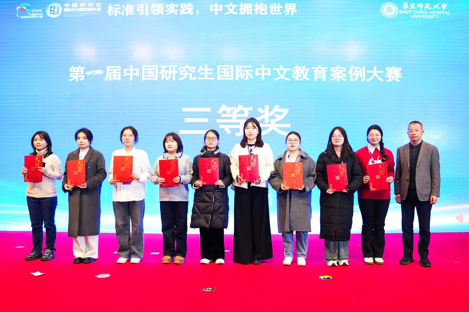 12月20日至22日,第一届中国研究生国际中文教育案例大赛总决赛在华东师范大学举行。本次大赛由教育部学位管理与研究生教育司指导,中国学位与研究生教育学会、中国科协青少年科技中心主办。大赛分为初赛、决赛和冠军争夺赛三个阶段,开设“国际中文教育的新标准”“国际中文教育的新技术”“国际中文教育的新应用”三个赛道。全国287所培养单位的1460支研究生队伍报名参赛,有37家培养单位的60支队伍入围总决赛。云南师范大学获优秀组织奖,国际中文教育学院两个学生团队分获二等奖、三等奖。