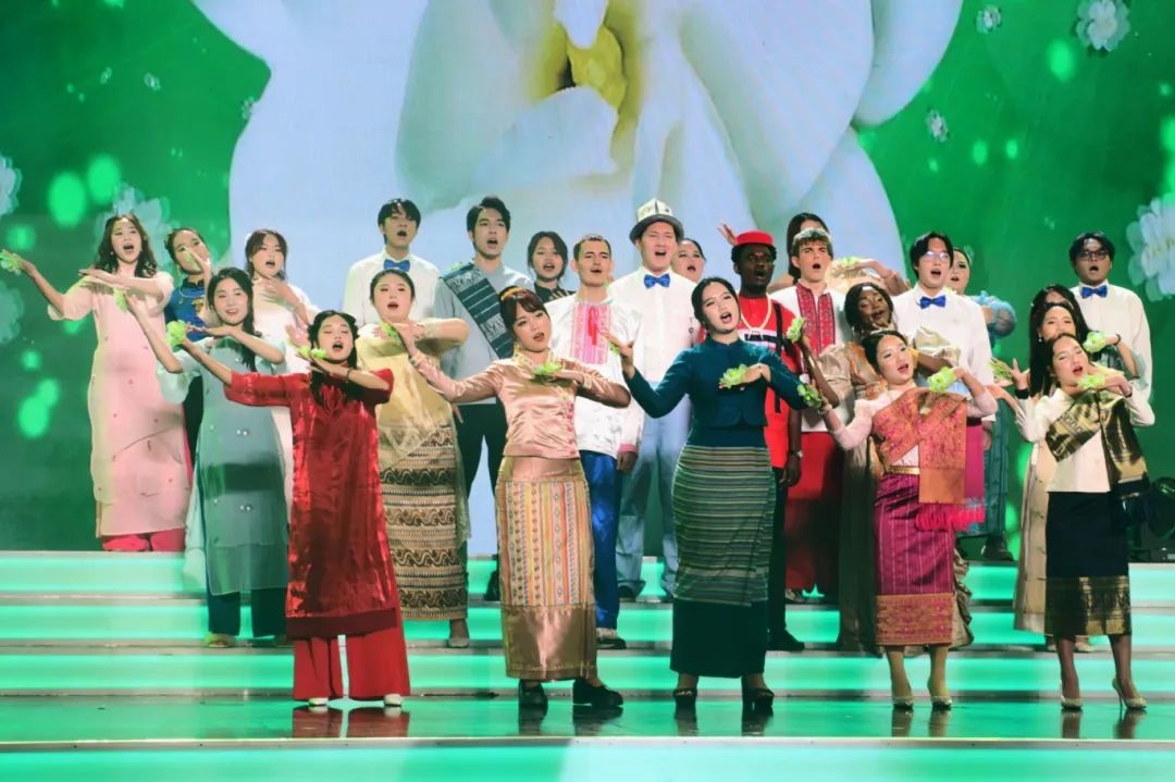 云师“和声国际”合唱团倾情演唱了《茉莉花》。这支合唱团成立于今年10月,由12个国家的60余名中外学生组成。留学生们通过“音乐”这座桥梁,连接中外,沟通世界,唱出自己与中国的故事,奏响“一带一路”的最美和声。“我希望我们的演绎能够给观众带来温暖。在练习《茉莉花》的过程中,我们这群来自不同国家的留学生不仅感受到了这首歌曲表达出来的美好意义,结下了深厚的友谊,也加深了对中国文化的理解。”合唱团成员乌克兰籍国际学生阿尔特姆感慨道。