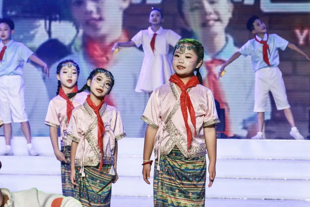 “联大荣光,传承梦想……”合唱联唱环节,云师附小、瑞丽四小以及师大实验中学的同学们带来歌曲《有爱相伴的地方》《圆梦心愿》《我们举起一束光》,他们用真挚的歌声,唱响美好的年少时光。在今年9月,云南师范大学与瑞丽市签署国门学校合作办学协议,依托附属名校,面向基础教育薄弱的沿边等州市县,高质量领办基础教育相关学校。学校组建专业教师和研究生团队赴瑞丽市第四小学开展帮助,让每一个孩子的梦想都会被看见。“今天晚上我看到孩子们兴奋地说:‘老师,这个舞台好大呀,有这么多人看着我们!’我非常感动,也意识到了这次活动不仅仅是一场精彩的演出,更是一堂生动的思政课。这次经历会成为他们成长路上的重要一课,激励他们追求更大的梦想,勇敢走出边疆,拥抱更广阔的未来。”云师附属瑞丽国门小学教师赵美玲深有感触地说道。