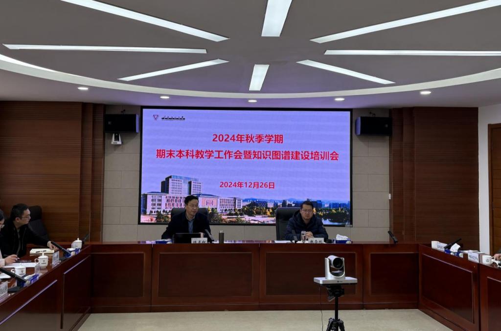 12月26日上午,学校2024年秋季学期期末本科教学工作会暨知识图谱建设培训会在呈贡校区召开。会议以贯彻落实全国教育大会精神、全省教育大会精神,推进本科教育教学审核评估整改,强化人工智能赋能教育教学改革为主题。各学院(学部)院长(主任)、本科教学副院长(副主任)、本科专业负责人、教务办主任,就业指导服务中心、网络与信息中心、心理健康教育咨询中心、后勤保障服务中心负责人,教务处、教学质量监控与评估中心科级及以上人员参加会议。会议由副校长陈正权主持。