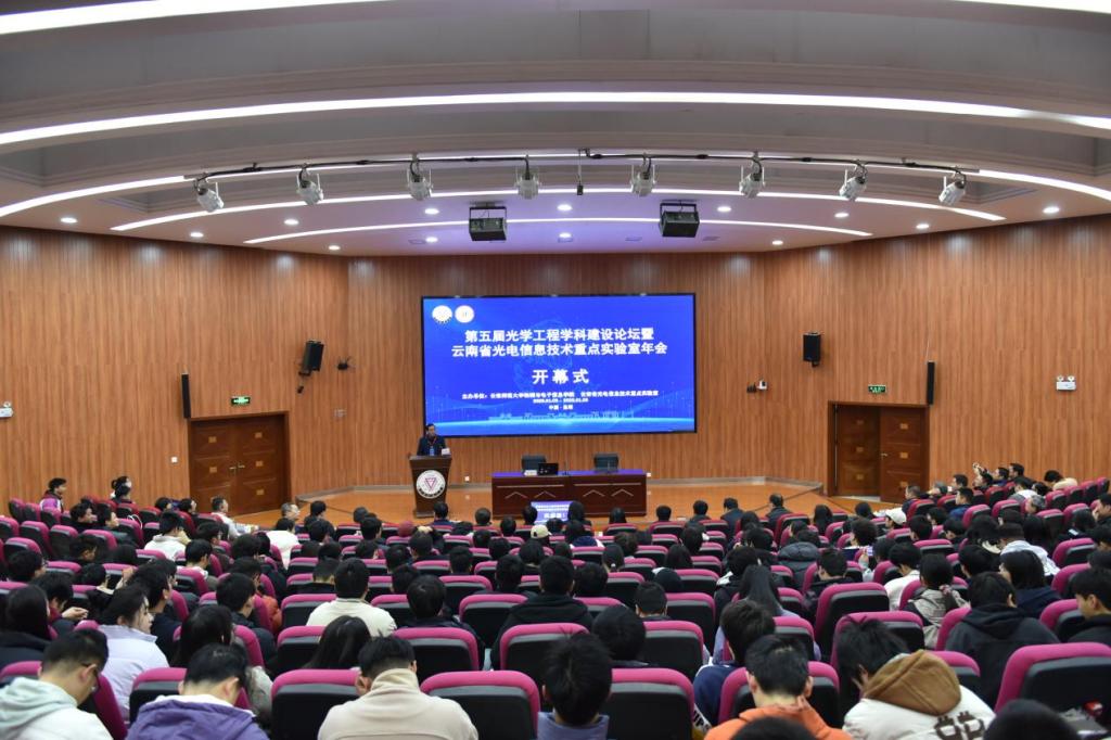 1月4日,由云南师范大学物理与电子信息学院主办的第五届光学工程学科建设论坛暨云南省光电信息技术重点实验室年会在呈贡校区开幕。论坛回顾总结了重点实验室一年来的建设发展成效,探讨光学工程学科高质量发展和人才培养,交流研讨光电信息技术领域发展新方向、新业态。开幕式由云南师范大学副校长陈飞教授主持。