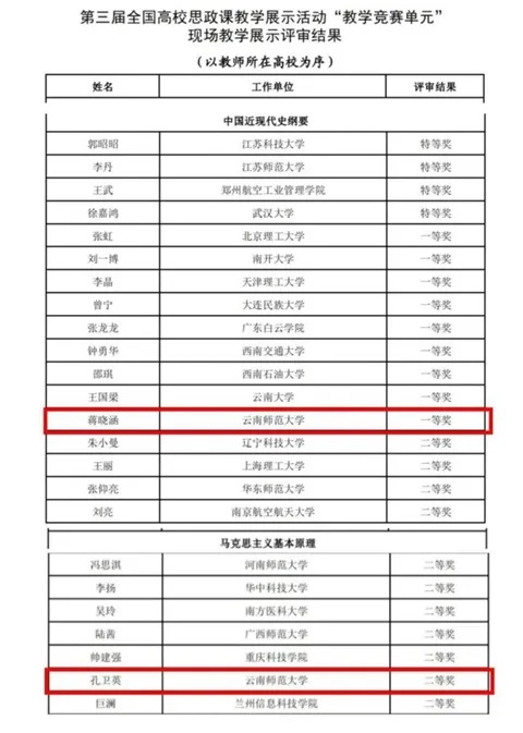 一是着力建设“一流”师资,把人才优势转化为育人优势、发展优势,着力建设一支政治强、情怀深、思维新、视野广、自律严、人格正的高素质思政课教师队伍。2名教师在第三届全国高校思想政治理论课教学展示活动“教学竞赛单元”分获一、二等奖。