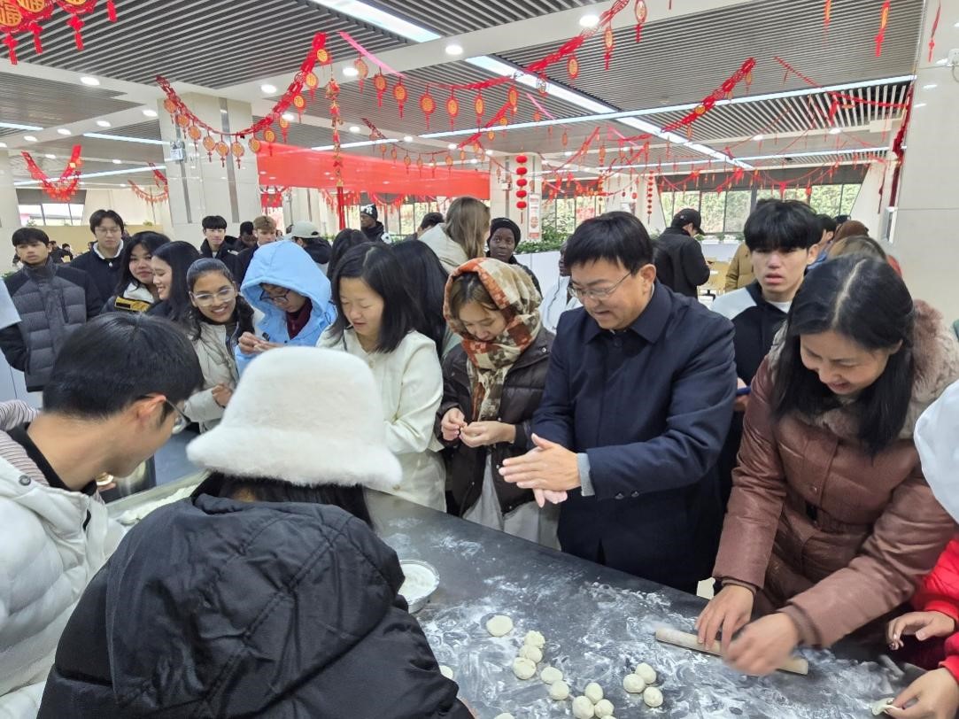 校领导为每一位假期留校学生发放了新春糖果,并与同学们一起包饺子、话家常,让留校学生们享受到“家”的味道,感受到“家”的温暖。最后,降富楼向大家送上新春祝福:愿每一位同学和老师在新的一年里身体健康、事业有成、心情愉悦、梦想实现,愿蛇年的智慧与灵动伴随着大家,让生活绽放出更加绚烂的光彩。