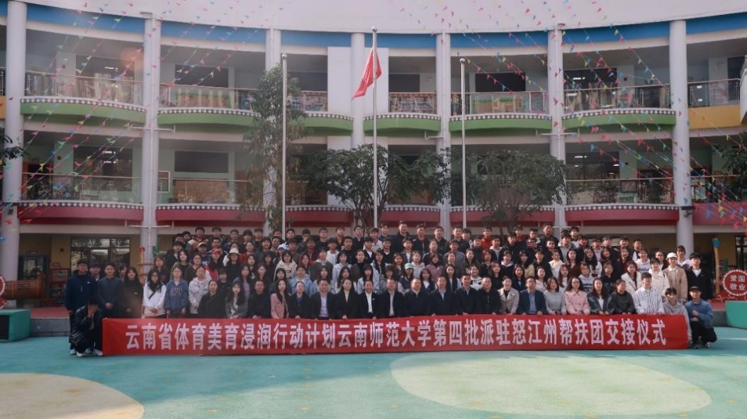 3月10日上午,帮扶团交接仪式在泸水市幼儿园举行。中共怒江州委副书记、州委教育工作领导小组副组长、教育工委书记杨国柱,泸水市、福贡县、贡山县政府、教育体育局分管领导,我校副校长陈正权、帮扶团驻点教师、艺术学院、体育学院120名学生参加活动。仪式由怒江州教育体育局党组书记、局长和春新主持。陈正权对怒江州委、州政府及泸水、福贡、贡山三个县市教育体育局对浸润计划提供的支持表示感谢,希望参加浸润计划的学生提高思想认识,弘扬西南联大精神,明确帮扶实习任务,认真思考“到怒江为什么?”“在怒江干什么?”“离开怒江留下什么?”三个问题,努力为边疆民族地区的基础教育发展作出贡献。