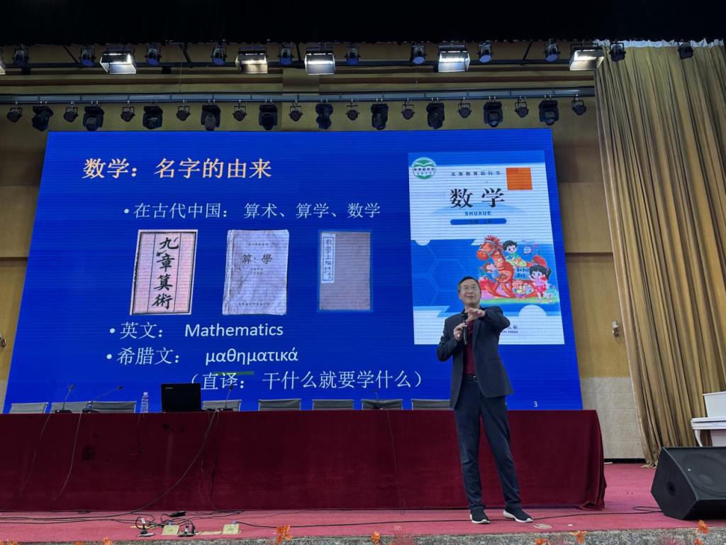 在近两小时的讲座中,袁亚湘院士立足“数学之美、数学之真、数学之趣、数学之难、数学之慧”五大维度,通过生活实例与专业理论相结合的讲解方式,系统解构数学学科的本质特征。他强调了数学作为基础学科的重要地位:“数学不仅是打开科学之门的钥匙,更是培养逻辑思维、创新能力的核心素养。”他深入浅出的阐释,让在场师生深刻体会到数学学科的独特魅力。