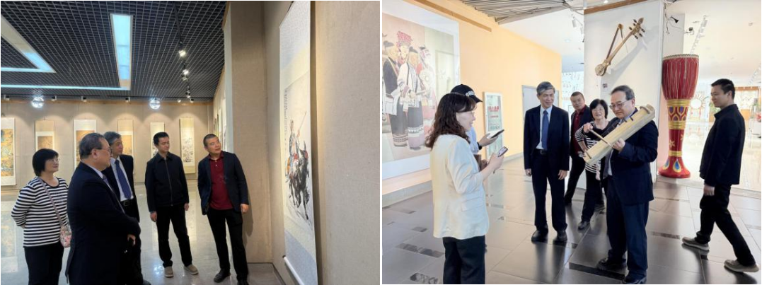 代表团了解了传媒学院的学科建设与专业布局,双方围绕学科建设、专业发展、人才培养模式等议题展开研讨。传媒学院负责人重点介绍了广播电视编导等专业在融媒体时代的创新实践,双方就传媒教育发展趋势、课程体系优化、学生实践能力提升等内容交换意见,达成合作意向。代表团参观了艺术学院的国画展厅、民族乐器陈列馆等特色教学场所,围绕艺术传承与创新进行交流。