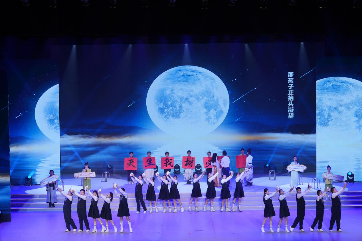 《寻踪幻影》以跨学科项目展示,内容丰富,尽显创新协作魅力;《醉笔玉盘》穿越古今对话李白,以“朋友圈” 吐露报国情怀;《竞界无疆》分享运动高光时刻,诠释拼搏与团队精神;《粹韵流芳》融合多剧种展演,让传统文化焕发新韵;《滇之眼》呼吁保护滇池,在劳动实践中探索科学之美;《数学Disco》数字跃动成欢快音符,公式化作灵动舞步,为抽象思维注入无限活力;让枯燥的数字“跳”起来!《名著漫游记》创意演绎名著,让学生浸润在经典芬芳之中;压轴节目《我们在一起,就会了不起》的大合唱,不仅展现了项目式学习带来的团队凝聚力,更彰显了学校"五育融合"的育人成果。