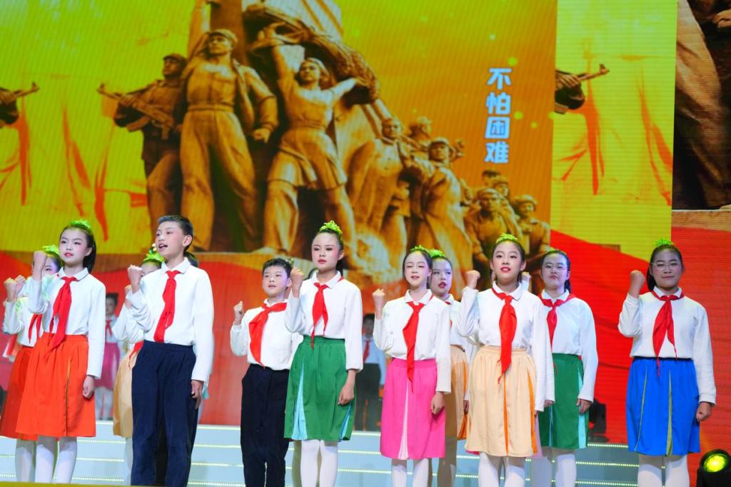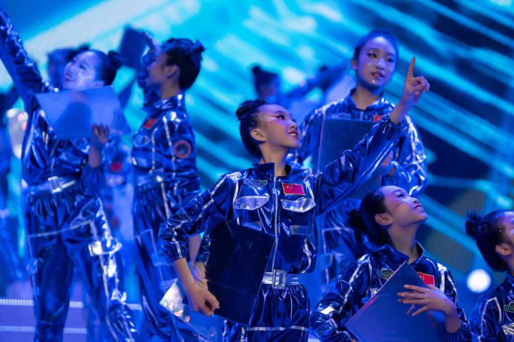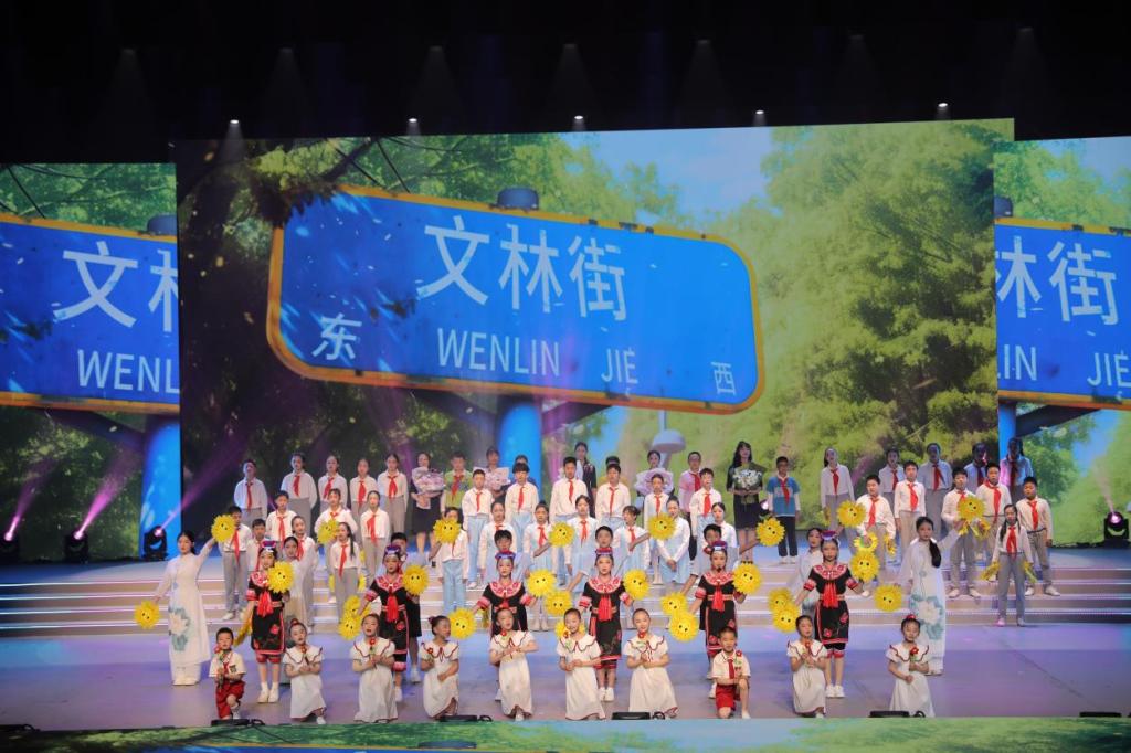 在银杏纷飞的唯美意境中,展演正式启幕。歌舞剧《奇怪的咸菜坛子》带领观众穿越时空,重温西南联大先贤的峥嵘岁月;《逐梦星辰》通过与智能体“云师小智”的跨时空对话,展现数字时代与少年梦想的激情碰撞;科技主题舞蹈《我的中国“芯”》以灵动舞姿诠释科技报国之志;合唱《共产主义接班人》唱响新时代少年的信仰担当,为第一篇章画上圆满句号。