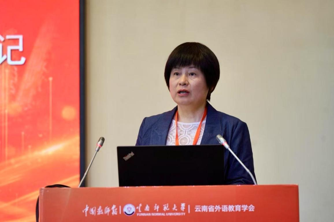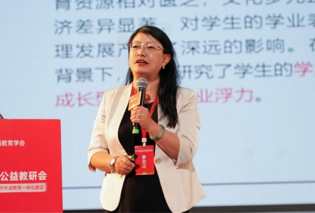 云南师范大学外国语学院教授侯云洁分享了《边疆民族地区外语课改的本土实践与教师发展研究》。侯云洁基于对边疆地区的外语教学探索,提出了针对边疆民族地区外语教育痛点的具体路径和方法,如解决“哑巴英语”的“以说促听”模式、解决薄弱读写的“以写促读”和微写作模式等。她还分享了自己在边疆民族地区有效促进教师队伍成长的经验,让与会教师进一步明晰专业发展方向。