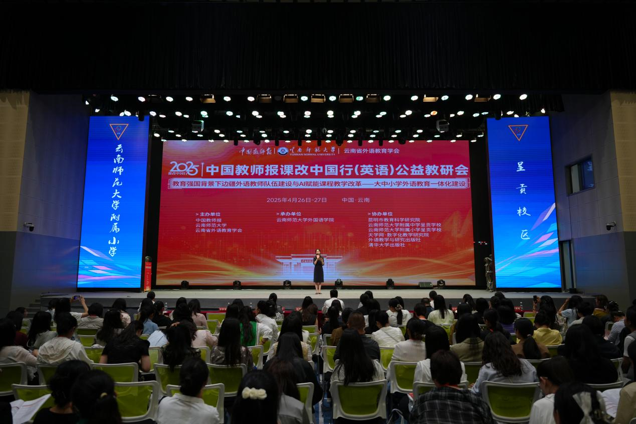 4月25日至27日,中国教师报联合云南师范大学、云南省外语教育学会共同主办的“中国教师报课改中国行(英语)公益教研会暨教育强国背景下边疆外语教师队伍建设与AI赋能课程教学改革——大中小学外语教育一体化建设研讨会”在云南师范大学举行。这是云南省首次举办涵盖大中小学外语教育的一体化建设论坛,吸引了全国多地高校学者、教研员、中小学英语教师及教育管理者共商边疆外语教育高质量发展路径。