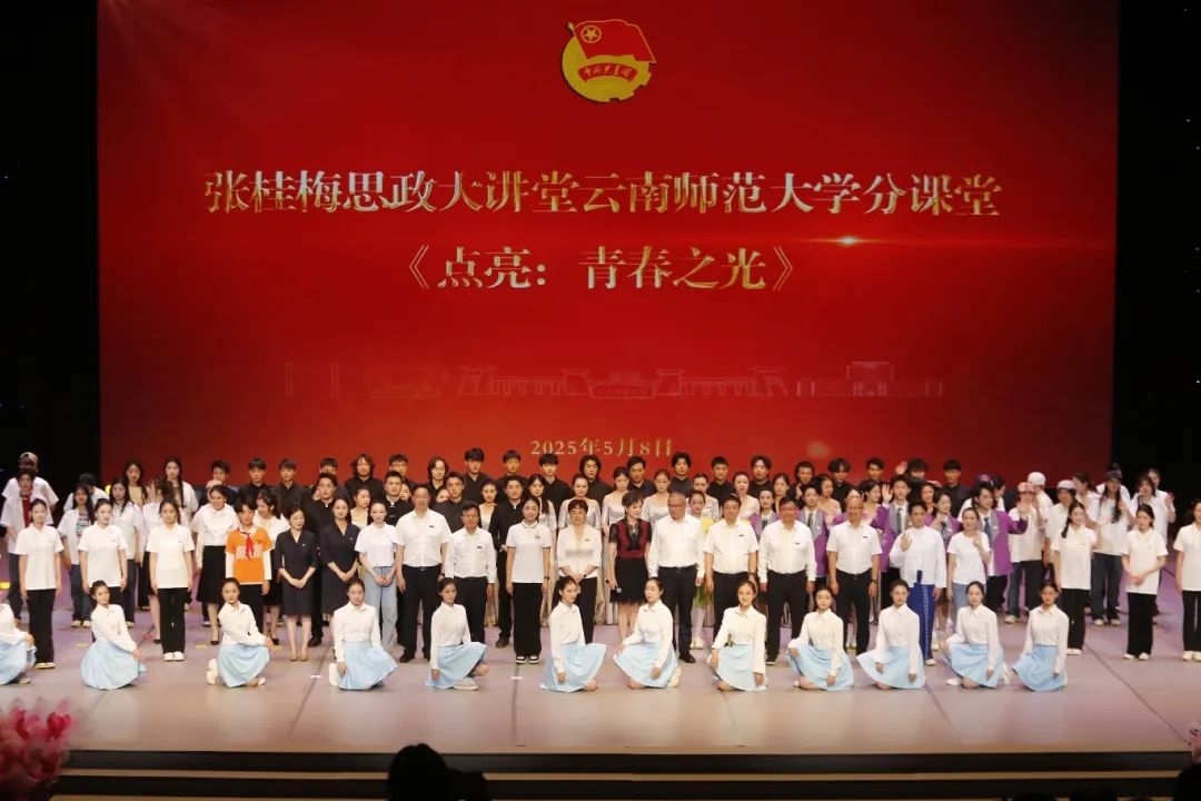 5月8日,张桂梅思政大讲堂云南师范大学分课堂《点亮:青春之光》暨2025年共青团表彰大会在呈贡校区举行。这不仅是一场思政教育的生动实践,更是一次青春精神的集体致敬,云师学子在聆听青年“遇见光、追逐光、敢发光”的成长历程中感受青年榜样力量。